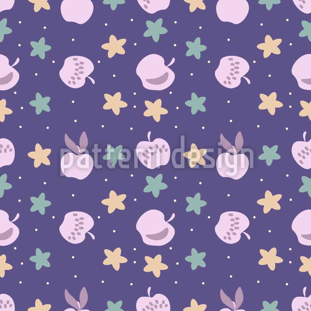| 説明 | 暗い背景にリンゴ、星、点が描かれた漫画パターン。 | ||