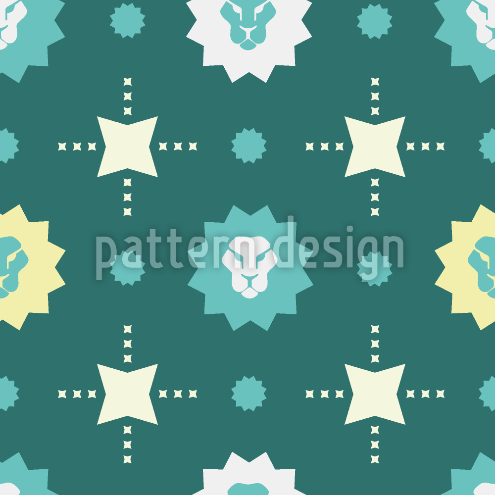 | 説明 | 幾何学的なシンボルと様式化されたライオンが描かれた幾何学的なグリッドパターン。 | ||