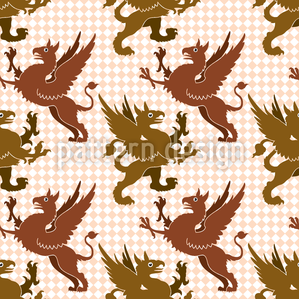 | 説明 | 市松模様の背景にグリフィンの生き物が描かれた神秘的な紋章柄。 | ||