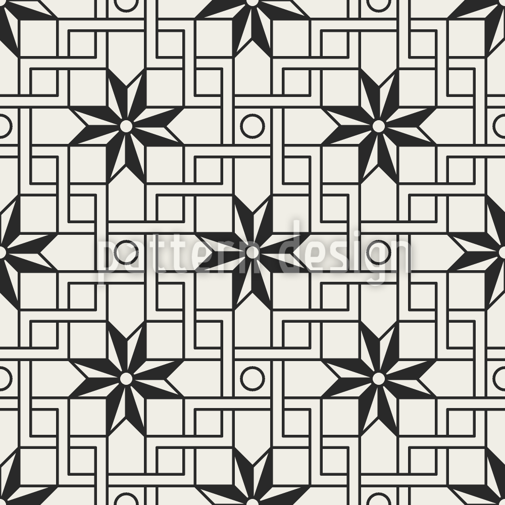 | 説明 | 連動して絡み合った線、円、星の形をした幾何学模様。 | ||