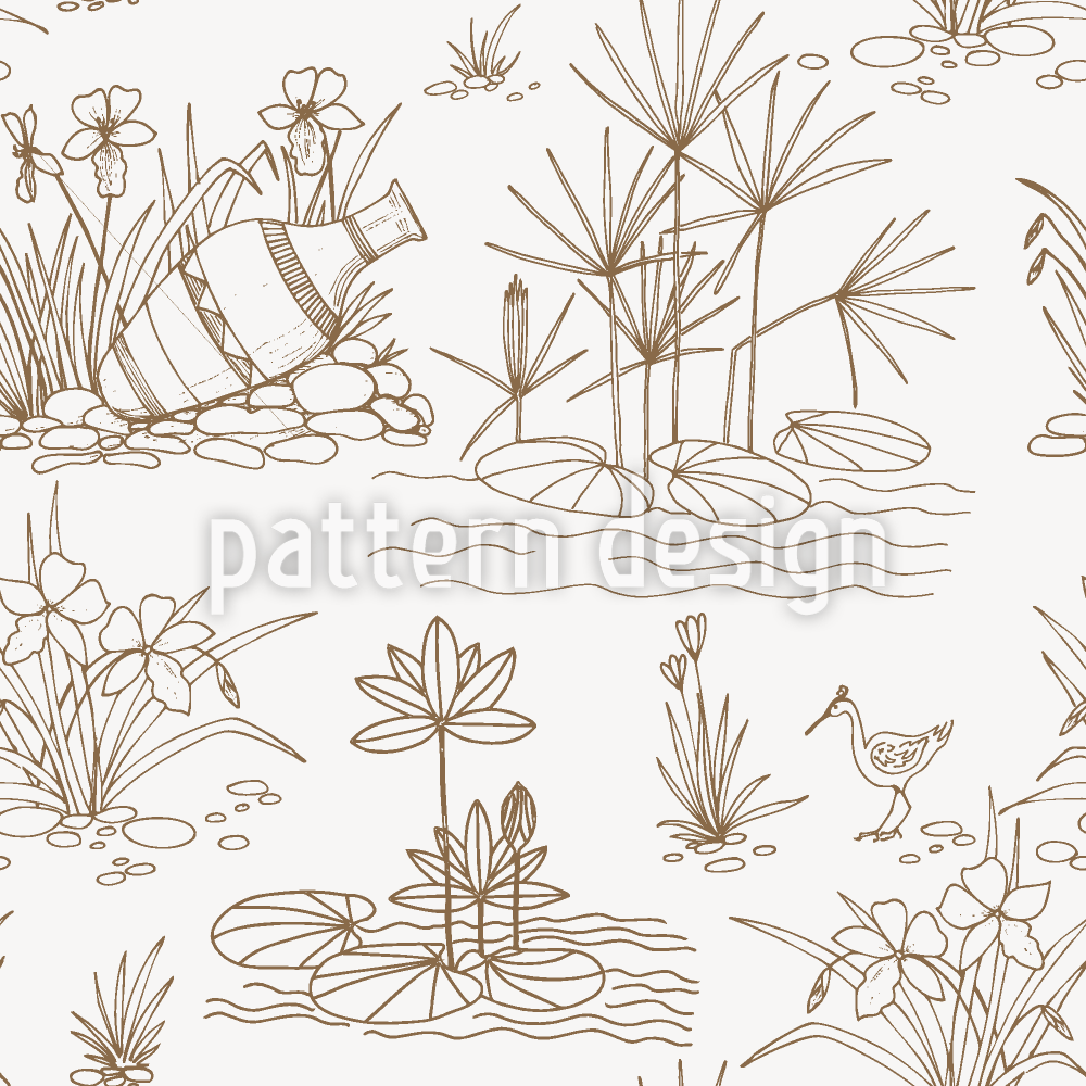 | 説明 | 水差しのある湖の風景の一部、小石に花と水草、鳥を描いたラインアートパターン。 | ||