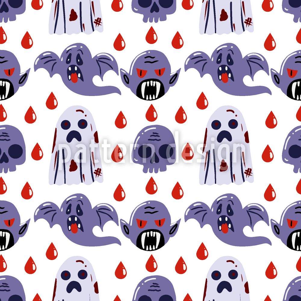 | 説明 | 血のしずく、吸血鬼の頭蓋骨、血まみれの幽霊が描かれたハロウィンパターン。 | ||