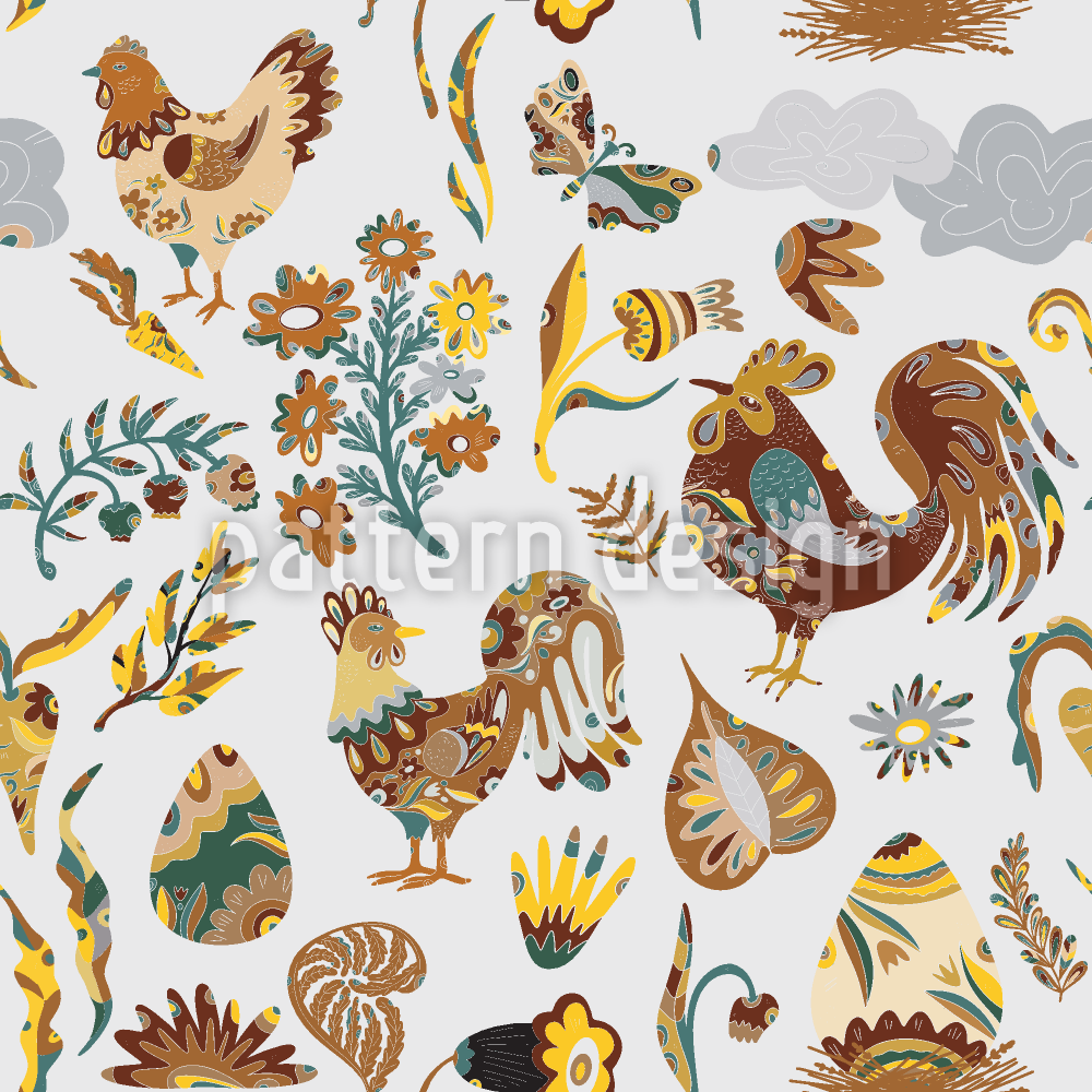 フォークアートにインスパイアされた動物と花のモチーフ シームレスなベクトルパターン設計