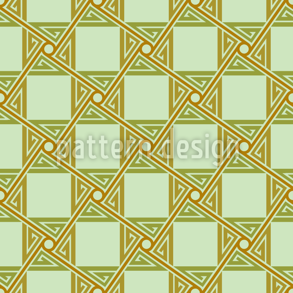 | 説明 | 緑と茶色の素朴な色合いの正方形と三角形が重なり合った対称的なパターン。 | ||