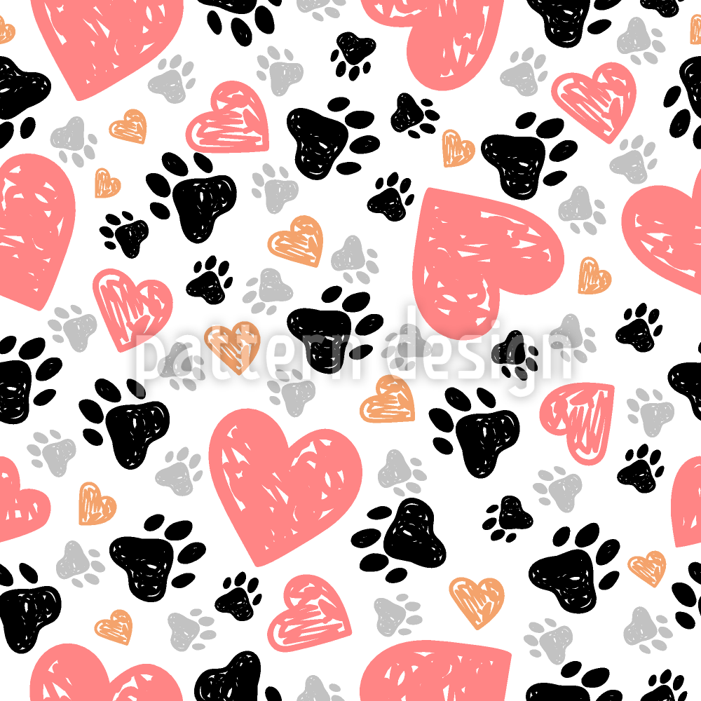 愛するペットとハートの痕跡 シームレスなベクトルパターン設計