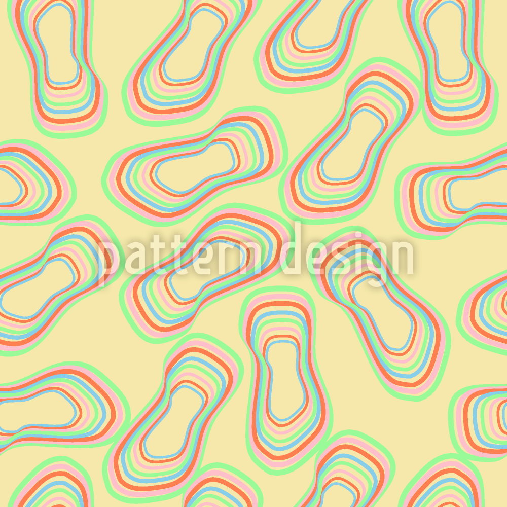 | 説明 | 抽象的な形を大胆な色使いで描いたレトロなパターンデザインで、サイケデリックな雰囲気を演出しています。 | ||