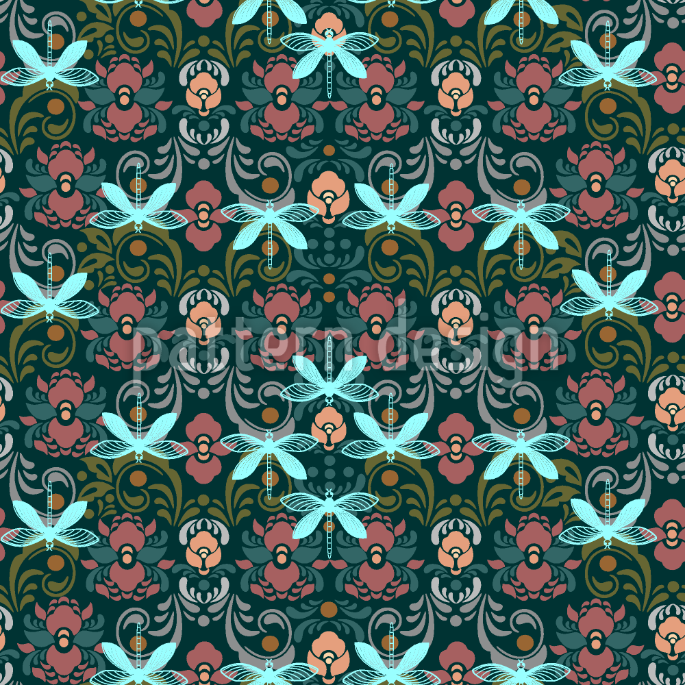 魅惑の庭のトンボ シームレスなベクトルパターン設計