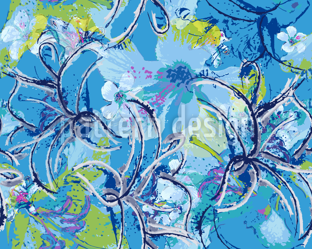 | 説明 | 青いハーモニックカラーのデザインで、魅惑的なユリの花と花。 | ||