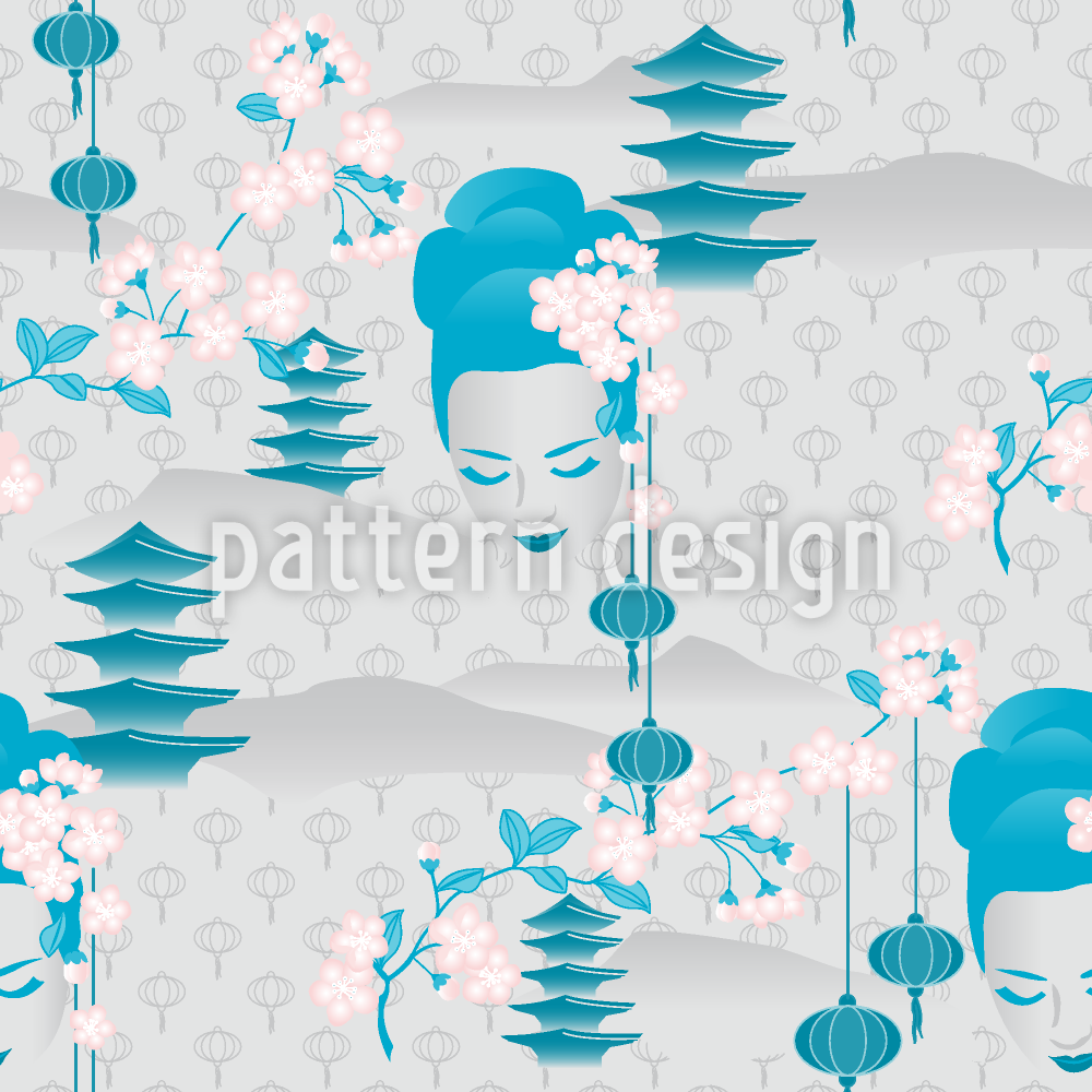 桜芸者シアン シームレスなベクトルパターン設計