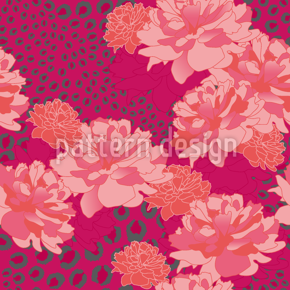 | 説明 | このデザインは、花と動物の要素を組み合わせたものです。ヒョウ柄の背景に牡丹の花が咲きます。 | ||