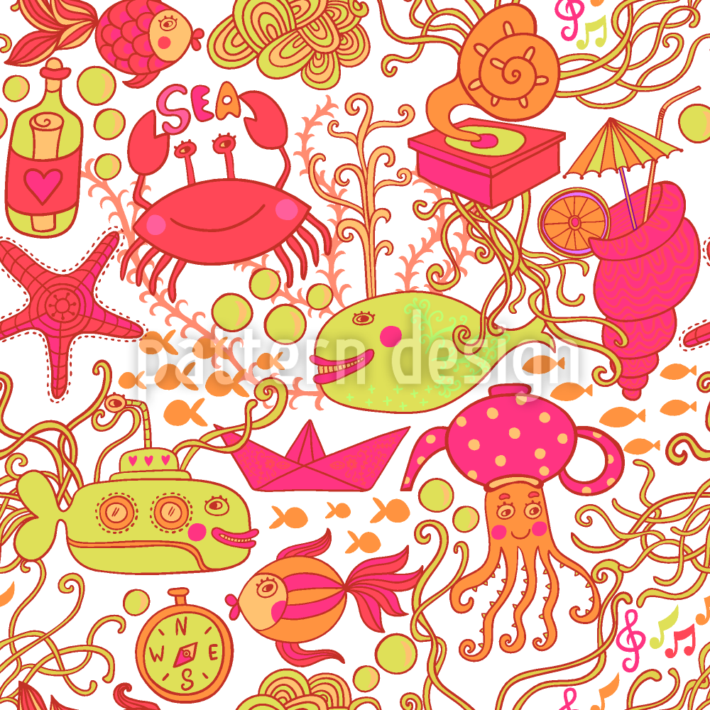 ハッピーイエローサブマリン シームレスなベクトルパターン設計