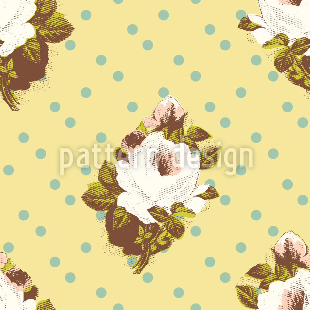 | 説明 | 私たちはバラを夢見ています...水玉模様にローズブーケをあしらった繊細なビンテージデザイン。 | ||
