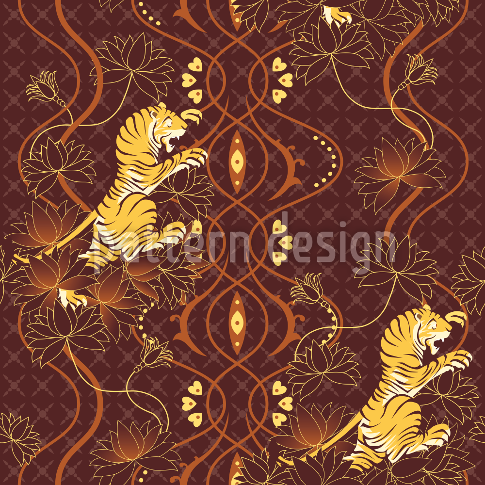 | 説明 | 民間伝承のディテール、蓮の花、虎のアートワークを備えた豊かに描かれたオリエンタルデザイン。 | ||