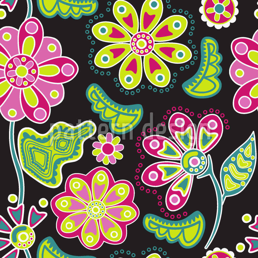夜の花の民話 シームレスなベクトルパターン設計