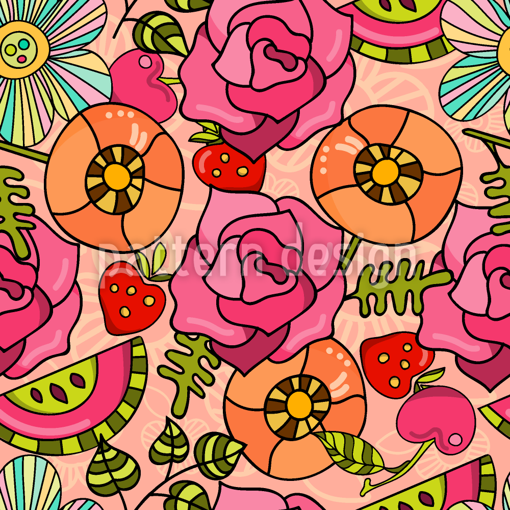 | 説明 | ポピー、バラ、イチゴ、スイカの明るいジューシーな夏のパターン。 | ||