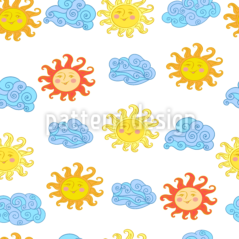 태양과 구름 원활한 벡터 패턴 디자인