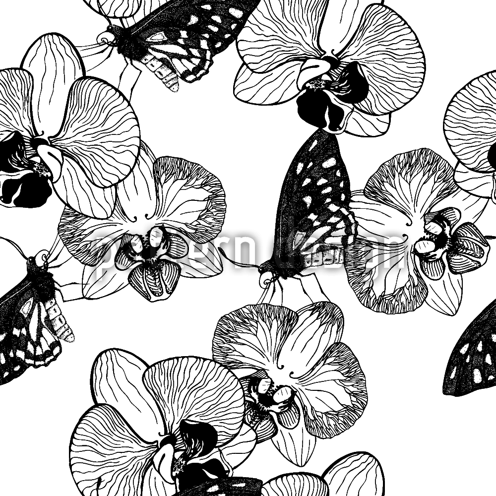 오키드 앤 버터플라이 원활한 벡터 패턴 디자인