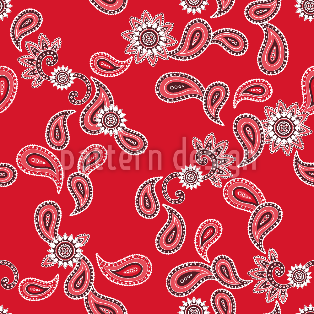 | 설명 | 빨간색 배경에 다양한 페이즐리 삽화. | ||