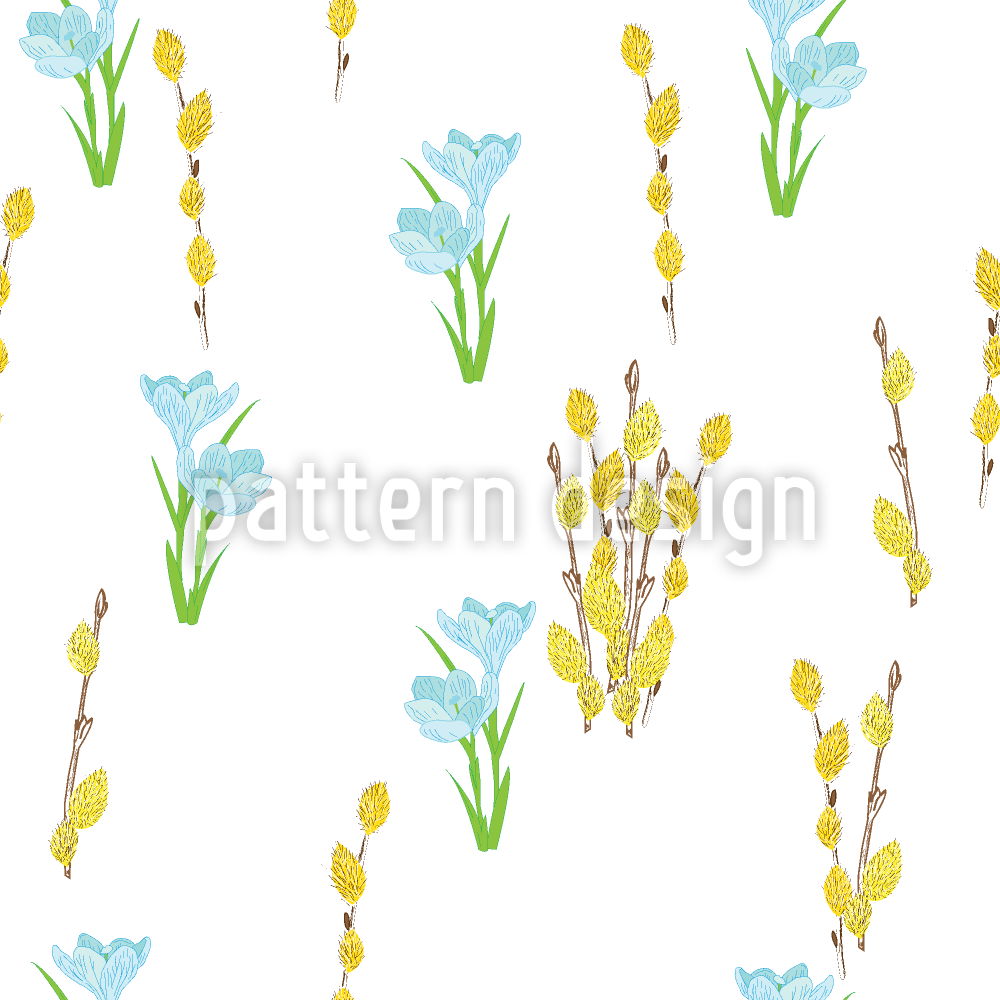 | 설명 | 꽃 버드 나무와 섬세한 크로커스의 가지가있는 봄 패턴. | ||
