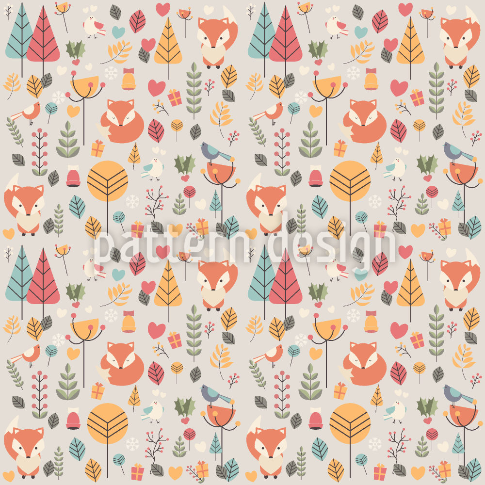 | 설명 | 꽃 장식과 새들로 둘러싸인 크리스마스 아기 여우와 귀여운 패턴. | ||