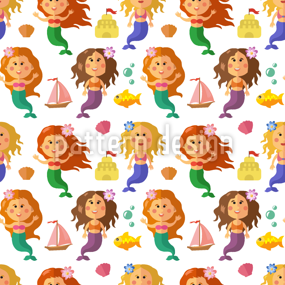 리틀 머메이드 원활한 벡터 패턴 디자인