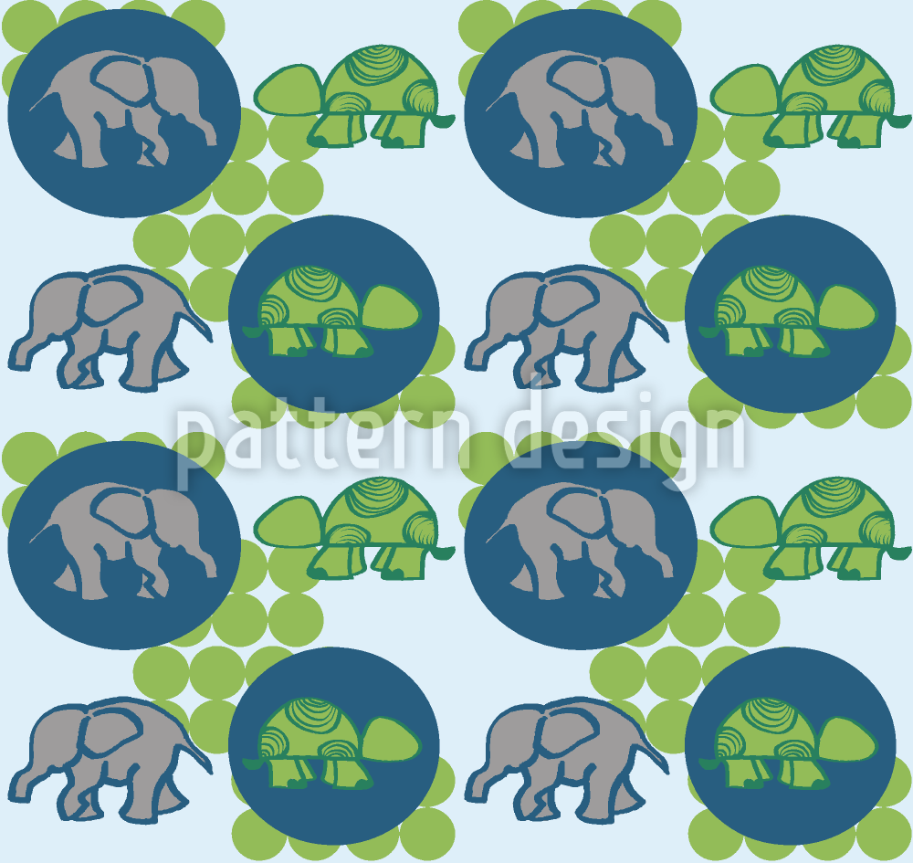 거북이와 코끼리 원활한 벡터 패턴 디자인