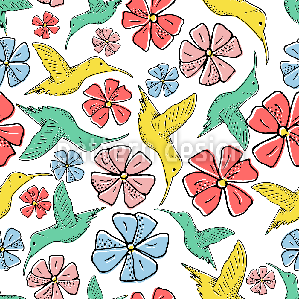 허밍 새와 이국적인 꽃 원활한 벡터 패턴 디자인