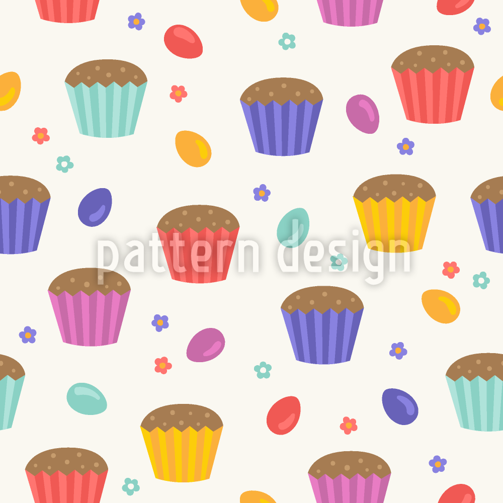 맛있는 컵케이크가 부활절 달걀을 만난다. 원활한 벡터 패턴 디자인