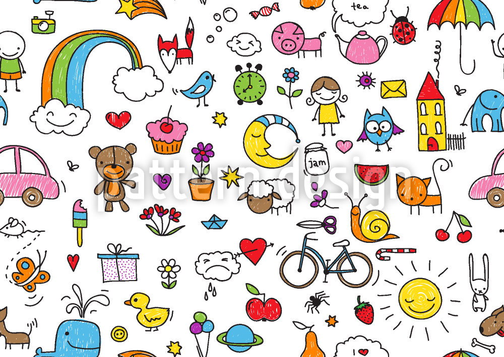 | 설명 | 동물, 사물 및 자연의 요소에 대한 어린이 같은 그림의 원활한 패턴. | ||