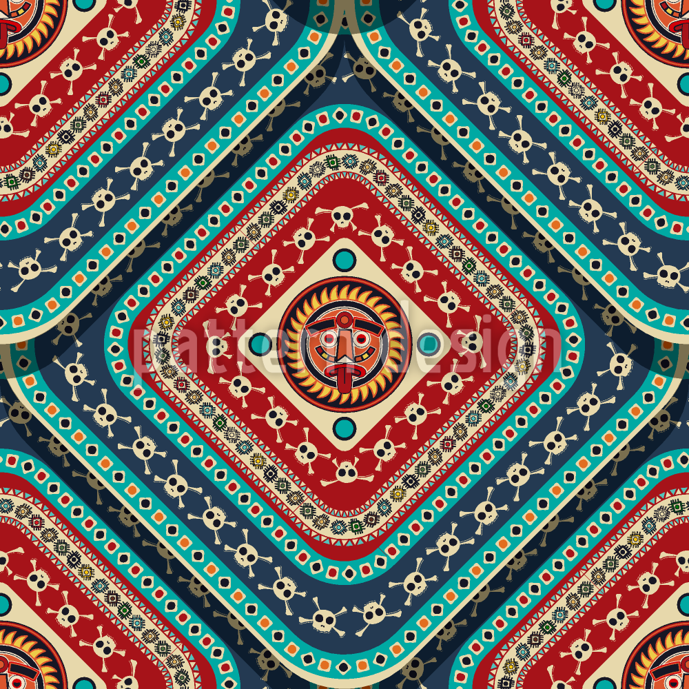 아즈텍 해골 원활한 벡터 패턴 디자인