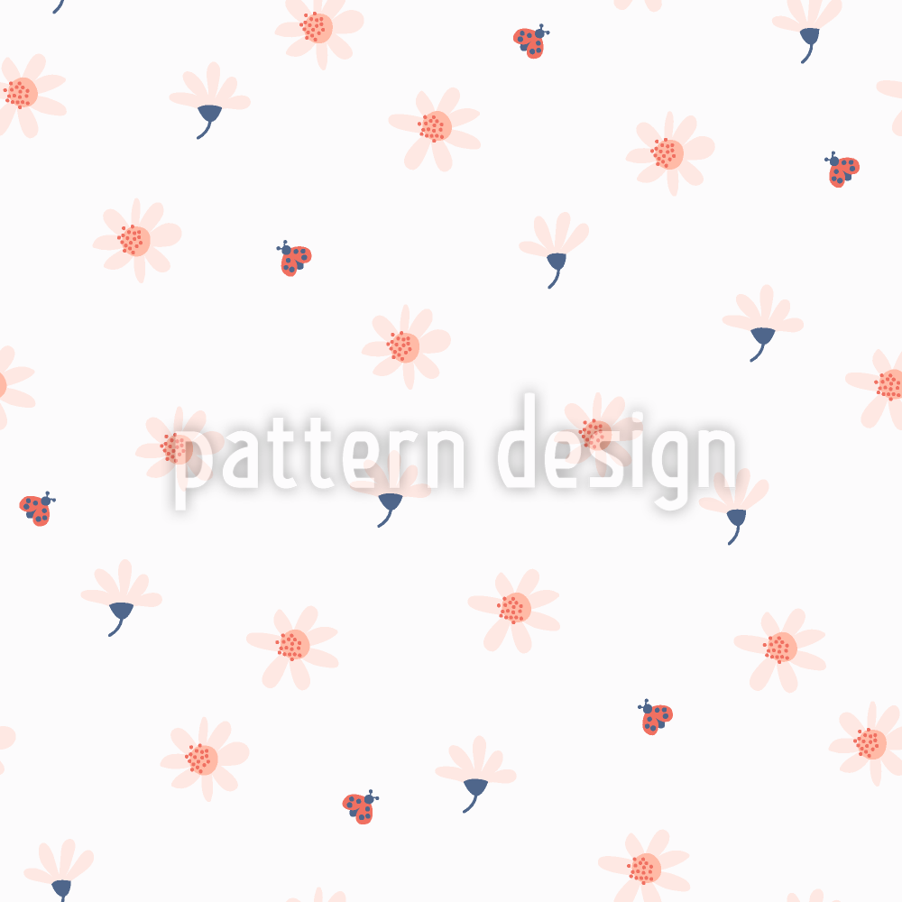 무당 벌레와 꽃가루 원활한 벡터 패턴 디자인