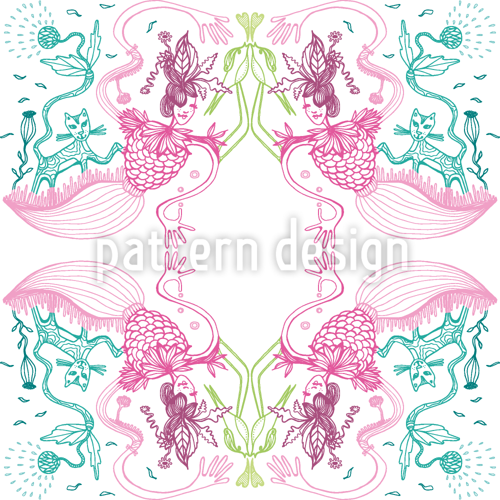 라즈베리 고양이에 대한 동화 원활한 벡터 패턴 디자인