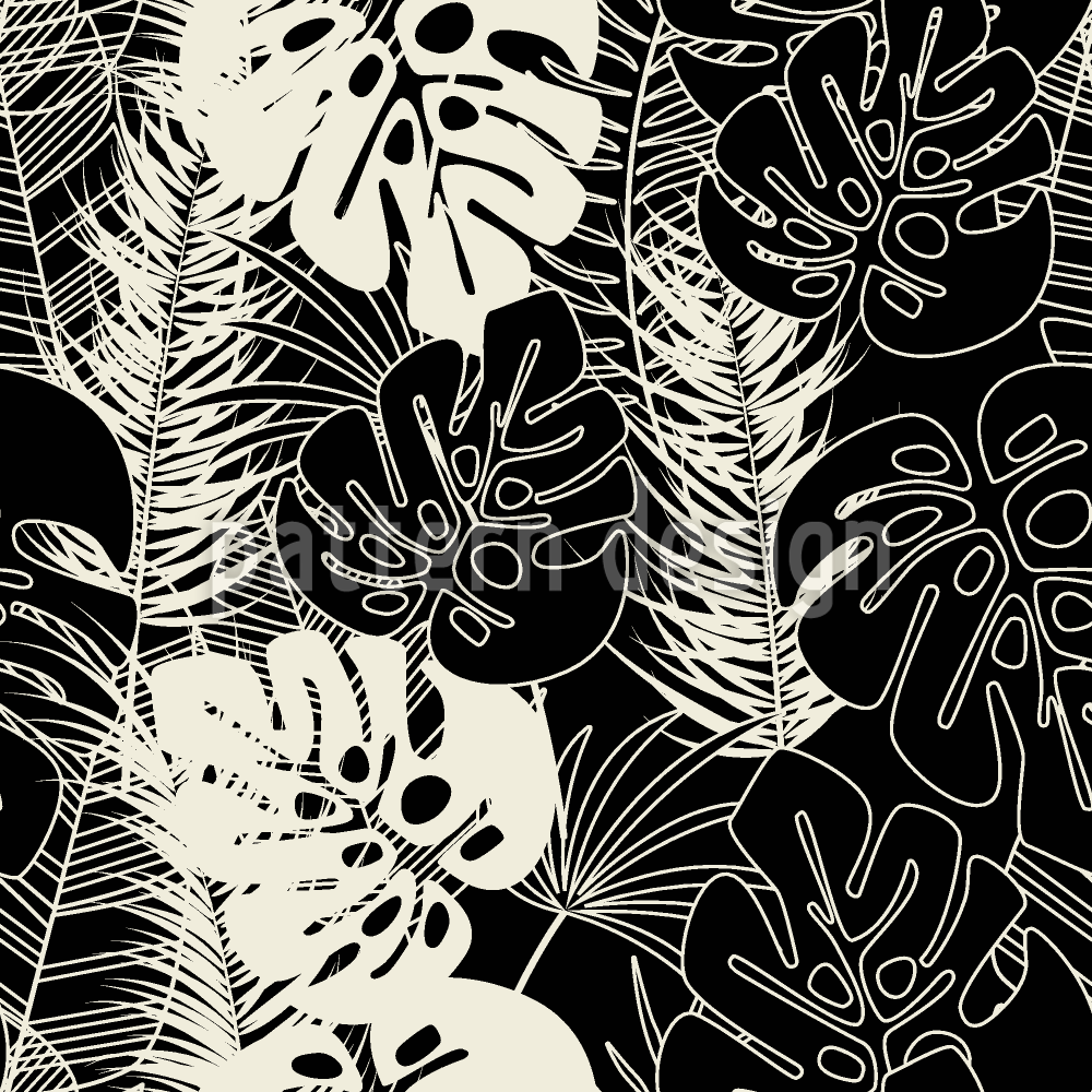 몬스테라와 팜 리프 테두리 원활한 벡터 패턴 디자인