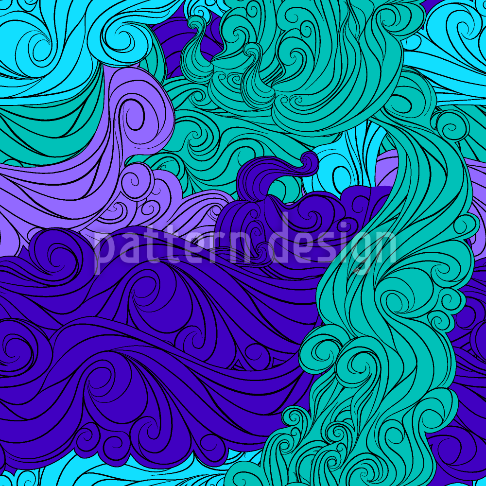 컬리 웨이브 스카이 원활한 벡터 패턴 디자인