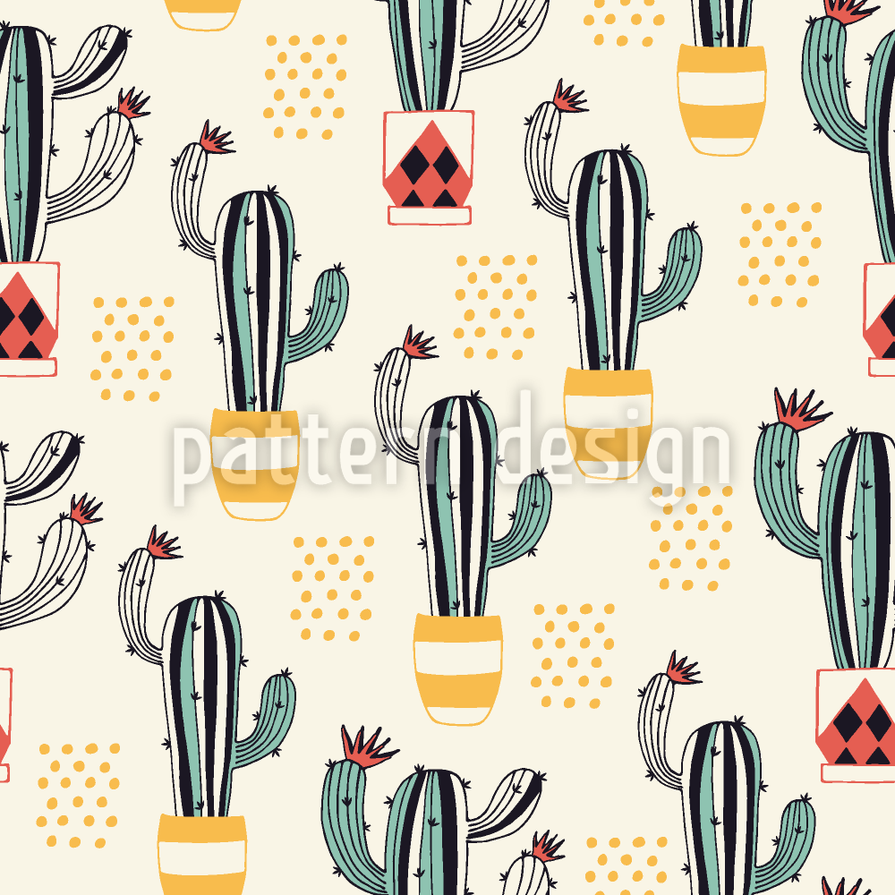 냄비에 선인장 원활한 벡터 패턴 디자인