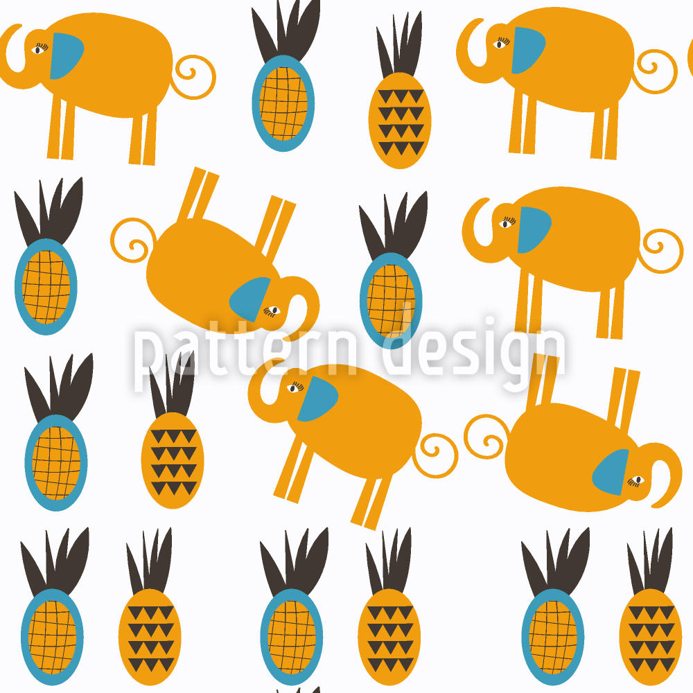 코끼리 러브 파인애플 원활한 벡터 패턴 디자인