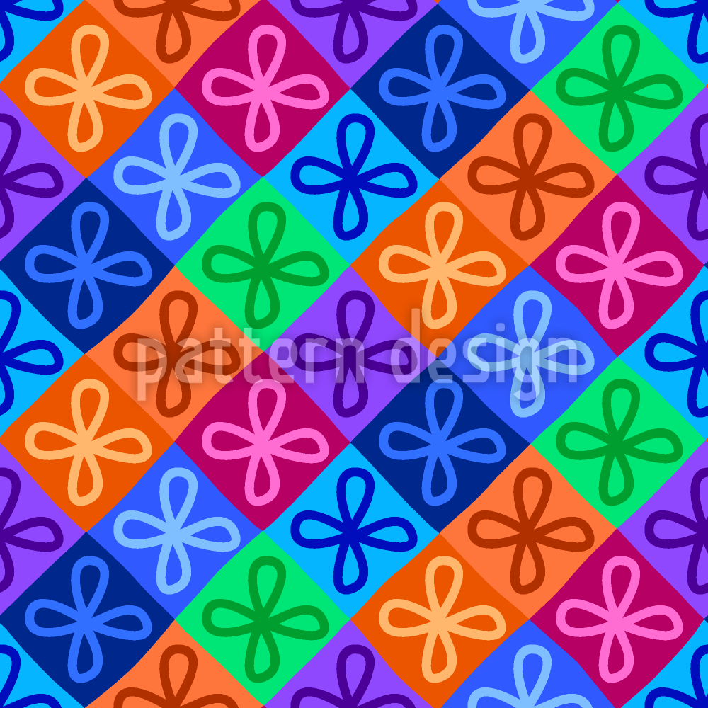 | 설명 | 낙서 꽃으로 장식된 강력하고 중요한 색상의 멀티 컬러 체크. | ||