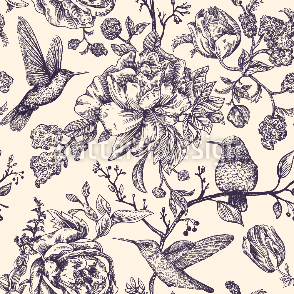 콜리브리와 꽃 원활한 벡터 패턴 디자인
