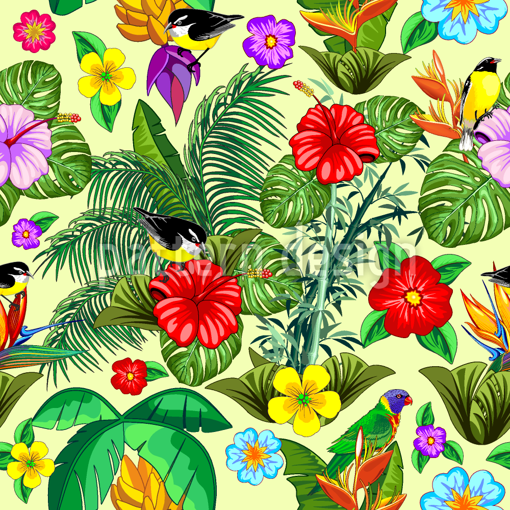 | 설명 | 열대 식물과 동물 군으로 구성된 이국적인 원활한 패턴. | ||