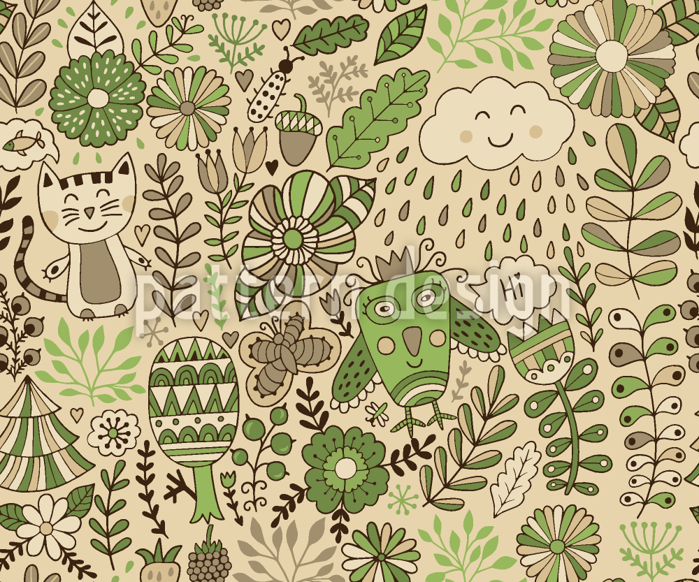 | 설명 | 마법의 꽃 풍경에 고양이와 올빼미와 환상적인 매끄러운 패턴. | ||