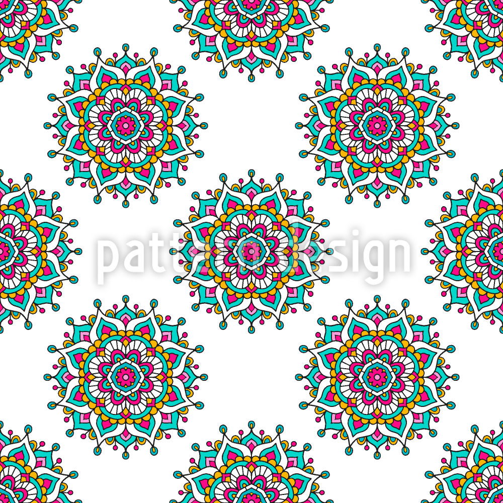 해피 만다라 플라워 원활한 벡터 패턴 디자인