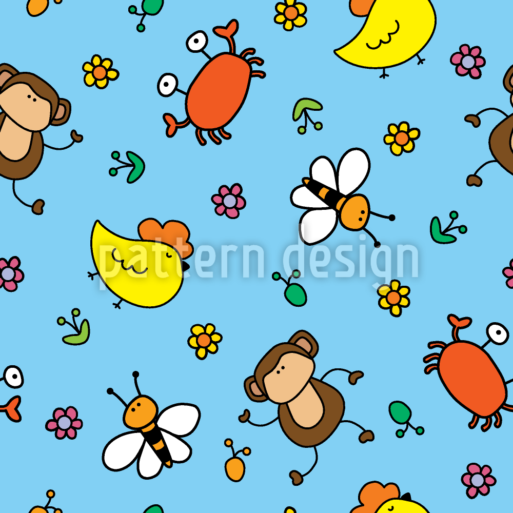 | 설명 | 흩어져있는 원숭이, 게, 병아리, 꿀벌, 꽃으로 완벽 한 귀여운 동물 패턴. | ||