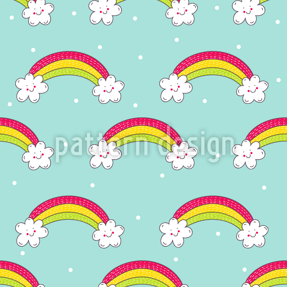 무지개와 행복한 구름 원활한 벡터 패턴 디자인