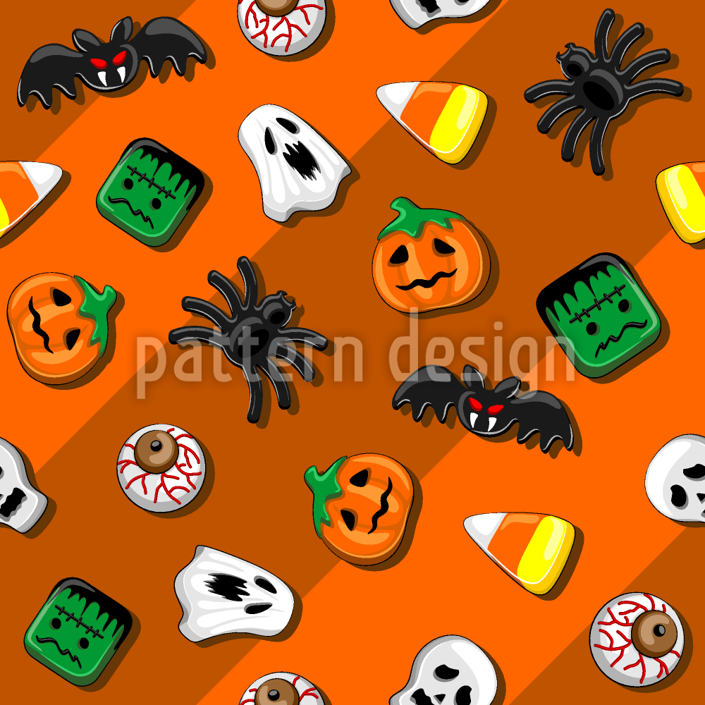 | 설명 | 두개골, 유령, 안구, 박쥐, 거미와 호박을 포함하여 흩어져있는 사탕과 함께 원활한 할로윈 패턴. | ||