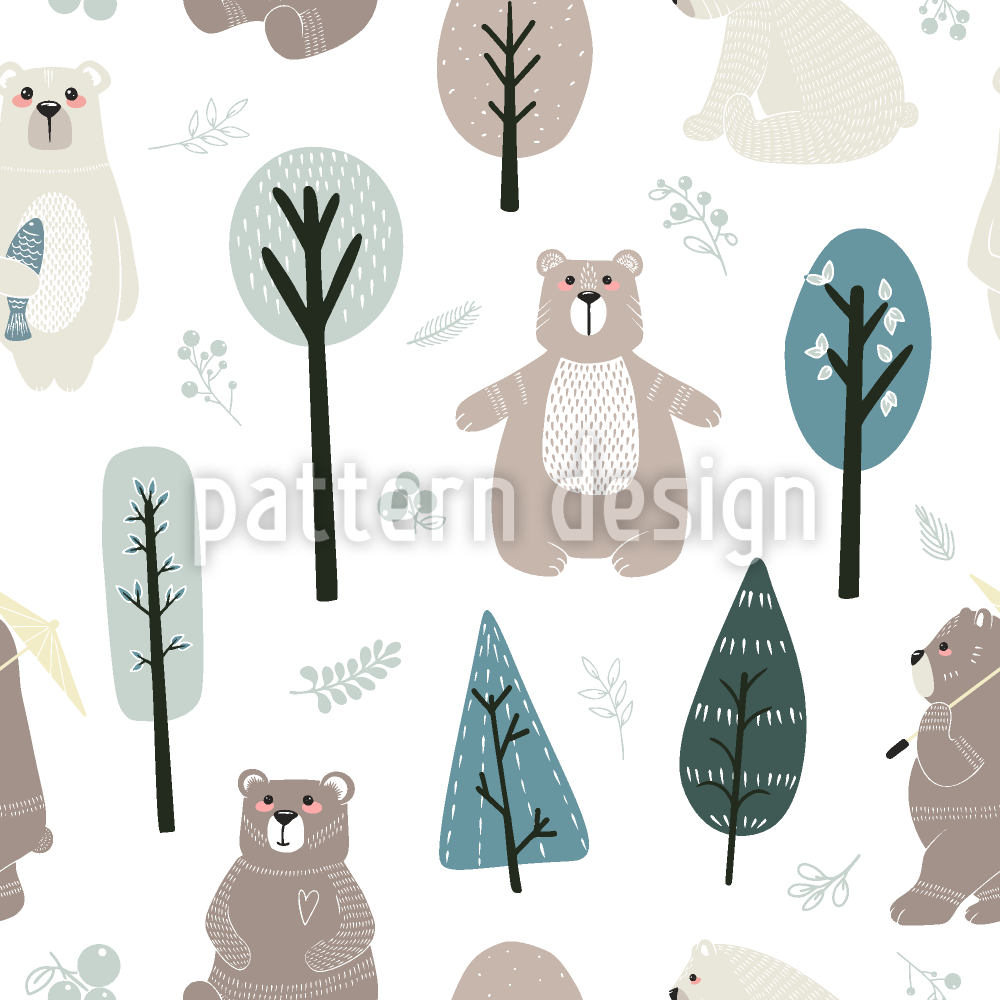 | 설명 | 스칸디나비아 스타일의 흩어져있는 곰과 나무가있는 원활한 동물 패턴. | ||