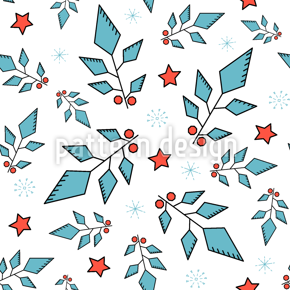| 설명 | 눈송이, 별, 나뭇잎과 열매가 달린 나뭇 가지가있는 최소한의 추상 패턴 디자인. | ||