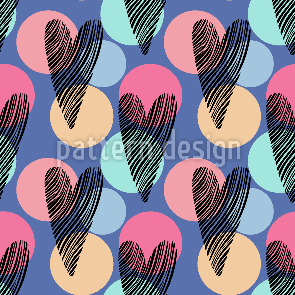 | 설명 | 흩어져있는 원과 줄무늬 하트가 있는 매끄러운 패턴 디자인. | ||
