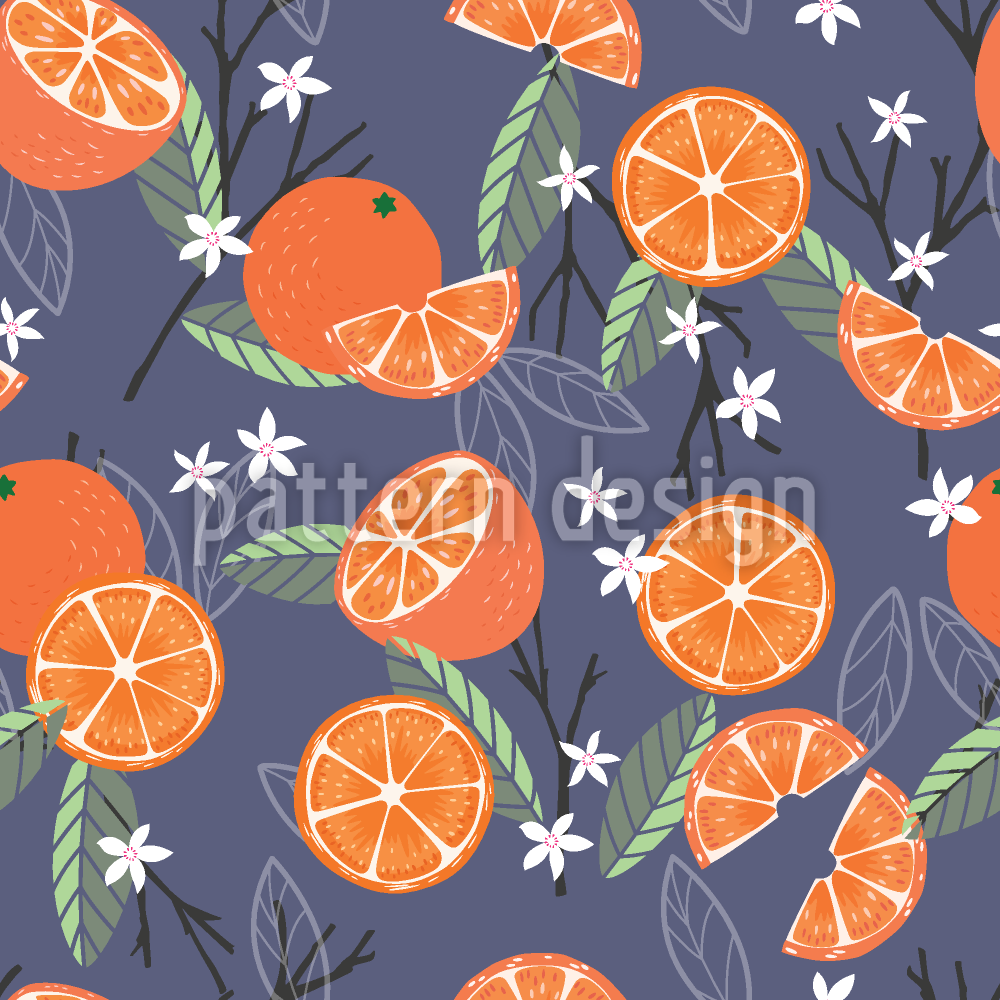 | 설명 | 흩어져있는 오렌지, 나뭇잎, 나뭇 가지와 꽃이 있는 원활한 과일 패턴 디자인. | ||