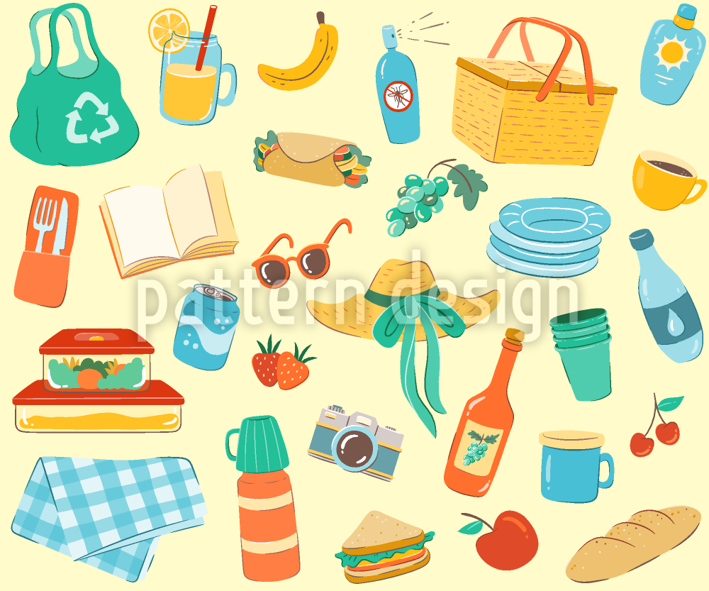 | 설명 | 피크닉 필수품이 흩어져 있는 매끄러운 여름 패턴 디자인. | ||