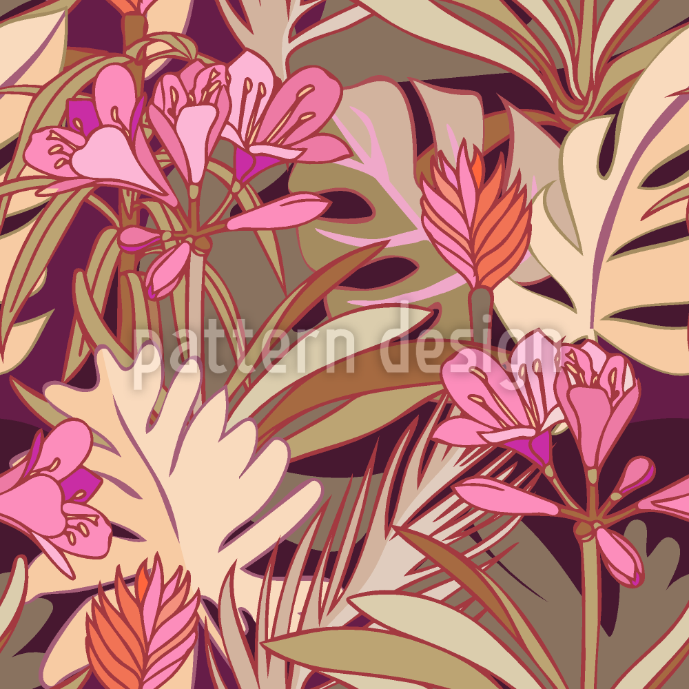 따뜻한 정글 식물 원활한 벡터 패턴 디자인